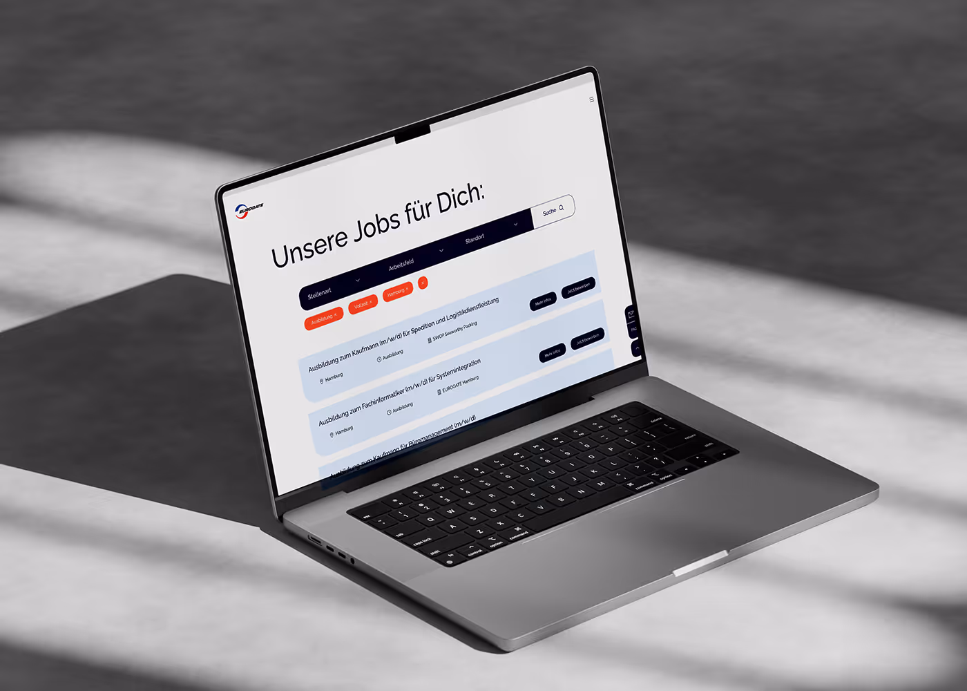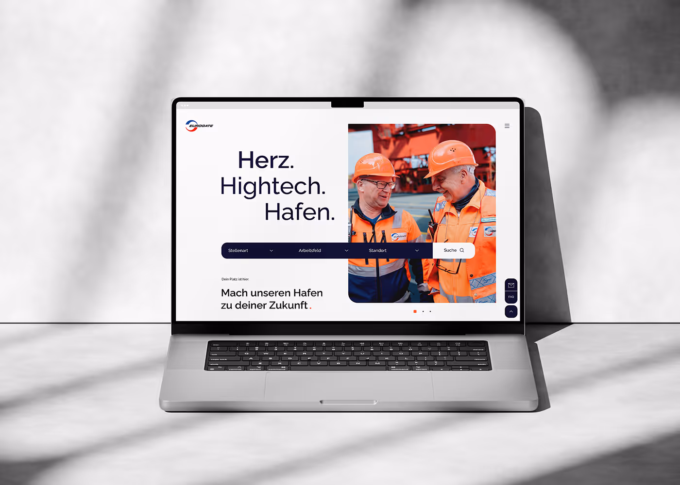 Das Ergebnis ist mehr als ein neuer Arbeitgeberauftritt. Die Arbeitgebermarke beschreibt heute die Identität von EUROGATE als Unternehmensgruppe. Die Leitidee übersetzen wir in Design, Kommunikation und digitale Touchpoints – unter anderem in der Corporate Website und im Karriereportal.